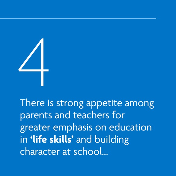 Parents do undoubtedly want schools to maintain a focus on academic outcomes, but they are also very keen to see expanded extra-curricular activities and the teaching of “life skills”, such as healthy eating and digital and financial literacy.